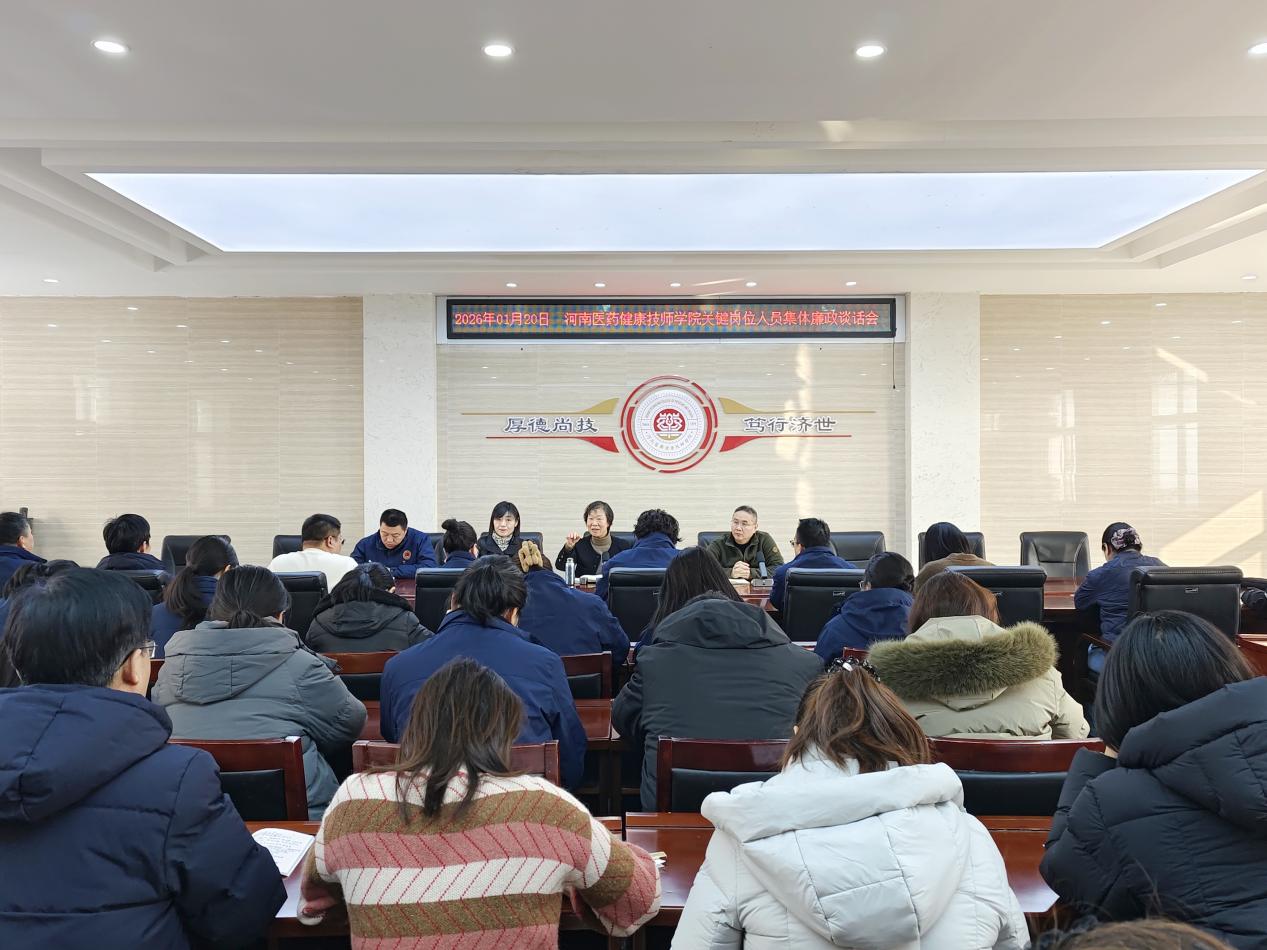 河南医药健康技师学院召开关键岗位人员集体廉政谈话会为深入贯彻落实党中央全面从严治党战略部署和党的二十届四中全会精神,落实省人社厅全面从严治党和党风廉政建设工作要求,1月20日下午,河南医药健康技师学院召开关键岗位人员集体廉政谈话会。校党委书记周秉伟出席