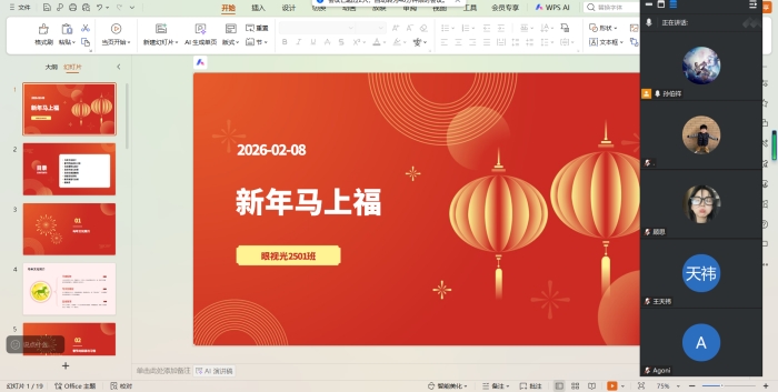为进一步加强假期学生思想政治教育工作,确保学生度过一个安全、充实、有意义的假期,河南医药健康技师学院健康服务产业学院组织各班召开了三次线上主题班会,分别以“我的寒假心愿清单”、“新年马上福”及“新年新气象”为主题,通过云端相聚,实现家校联动,全方位护