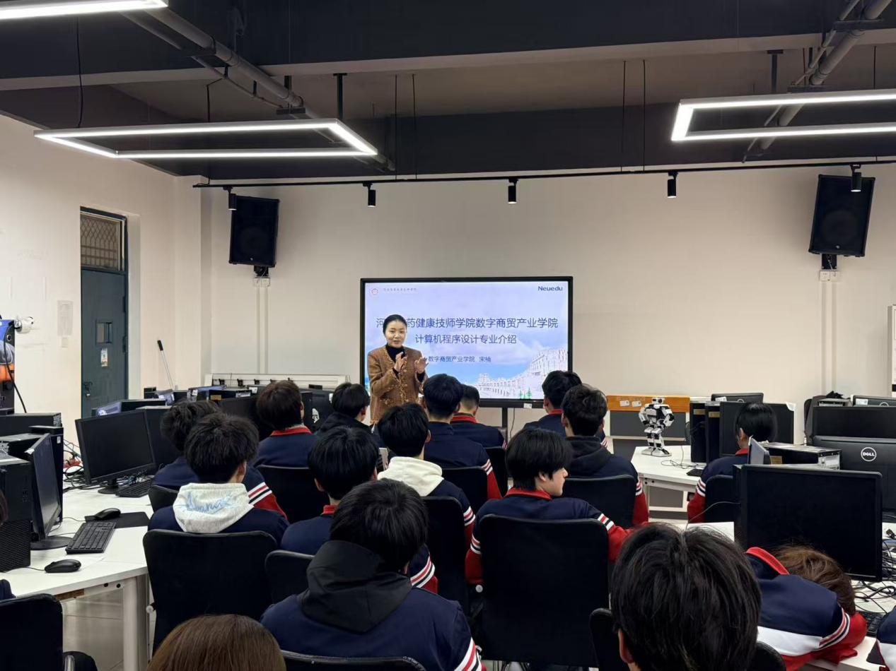 数字商贸产业学院的课堂上,更是满是新鲜感与探索欲。计算机程序设计专业的课堂现场氛围热烈,小巧灵动的智能机器人惊喜亮相,与新生趣味互动,瞬间点燃大家的学习热情。授课老师带领新生亲手体验视觉识别、远程控制等前沿技术操作,让同学们在亲手实践中,真切感受前沿技术与实操教学深度融合的独特魅力,解锁专业学习的新奇体验。
