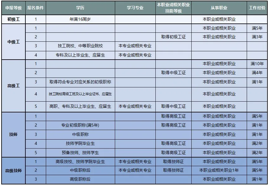 1.取得本职业或相关职业三级/高级工职业资格(职业技能等级)证书后,累计从事本职业或相关职业工作满5年