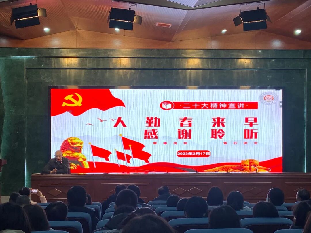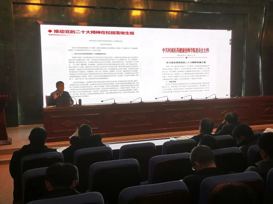 为学习宣传贯彻党的二十大精神,2023年2月17日下午,河南医药健康技师学院在新报告厅举办“推动党的二十大精神在校园落地生根”专题宣讲,学院党委委员、副院长王鹏主讲,三百余名教职工参加本次宣讲。