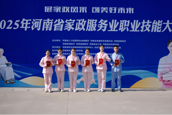 11月28日上午,2025年河南省家政服务业职业技能大赛闭幕式暨颁奖仪式在河南医药健康技师学院举行。省人社厅党组成员、副厅长、一级巡视员李甄,省发展改革委二级巡视员曹占涛,省教育厅党组成员、副厅长张国强,省商务厅二级巡视员张秀,省总工会党组成员、副主席高颖嘉