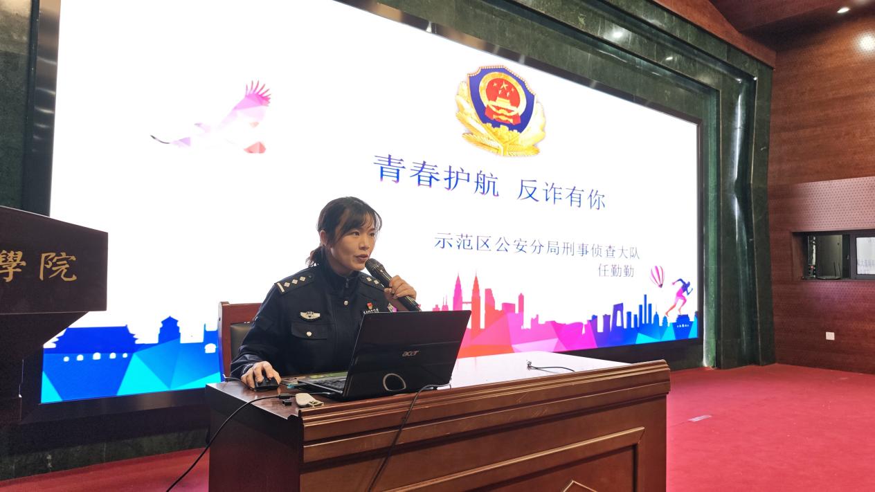 随后,由市公安局示范区分局刑侦大队二级警长任勤勤与市公安局顺河分局铁塔派出所教导员卢文燕开展主题讲座。