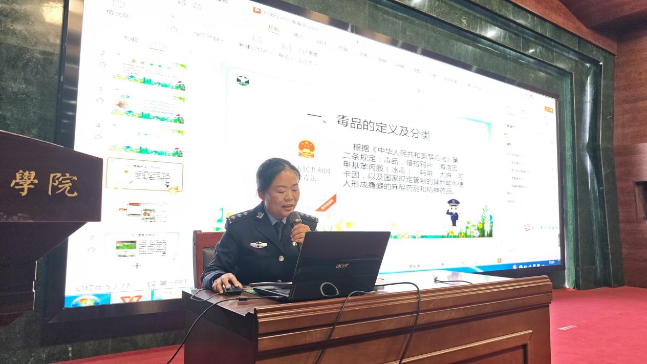 卢文燕在《珍爱生命,远离毒品》讲座中,从毒品的种类、危害以及如何预防毒品侵害等方面进行了详细讲解。通过展示毒品的图片、视频资料,让同学们直观地了解了毒品的外观特征和成瘾机制,深刻认识到毒品的可怕之处。