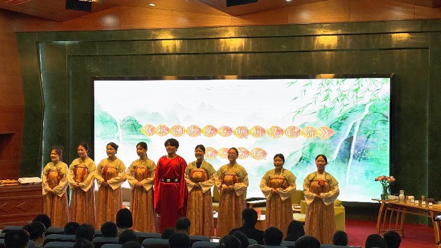 活动伊始,身着古装的学生们缓步登台,以一首《水调歌头·明月几时有》的深情诵读拉开序幕,“但愿人长久,千里共婵娟”的美好祈愿流淌在会场内外。