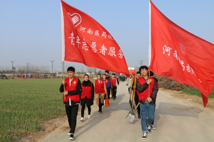 植树现场春风拂面,团旗招展。院团委副书记刘杨、制药工程系团总支书记李彩娟、经贸系蔡芳芳老师组织参加了本次活动,30余名河南医药技师学院师生高举着校旗和青年志愿者旗,自带劳动工具来到植树地点。