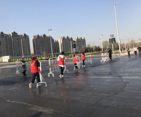 为配合好开封体育局的相关工作安排,清晨5:30,在院团委的组织下,各系带队老师以及150名志愿者早早来到学校门口集合,等待出发。6:00乘车奔赴志愿服务地点。7:20准时到达各个岗位,志愿者们主要负责的是配合公安民警及赛事工作人员,担负终点及郑开大道上的现场秩序的维护工作,阻止无关人员及车辆进入参赛区域,阻止沿途群众横穿赛道、为马拉松参赛者加油助威,传播正能量。