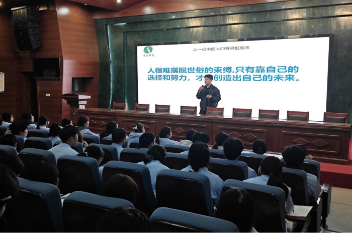 图 晋善颈美商学院院长陈鑫为康复保健专业学生进行宣讲